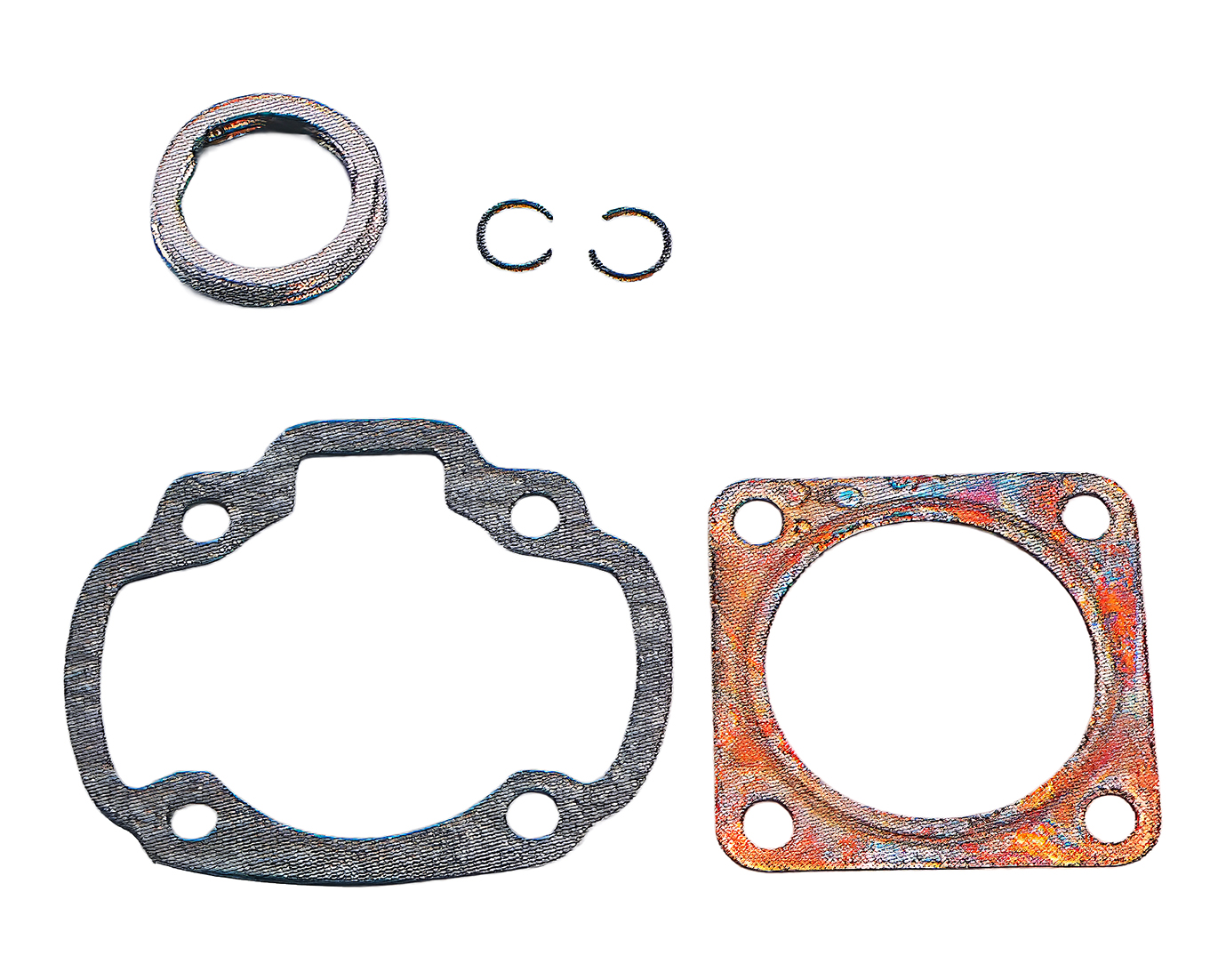 当社製ボアアップKIT用のシリンダー、シリンダーヘッド部のリペアのパッキンSETです。補修用として工具箱に1SET入れておくと、急なトラブル発生時に大変便利です。