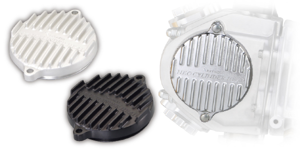 NEOシリンダーヘッドの刻印が入った専用デザインのサイドカバーです。シルバーとブラックとシリンダーヘッドに色に合わせてコーディネイト