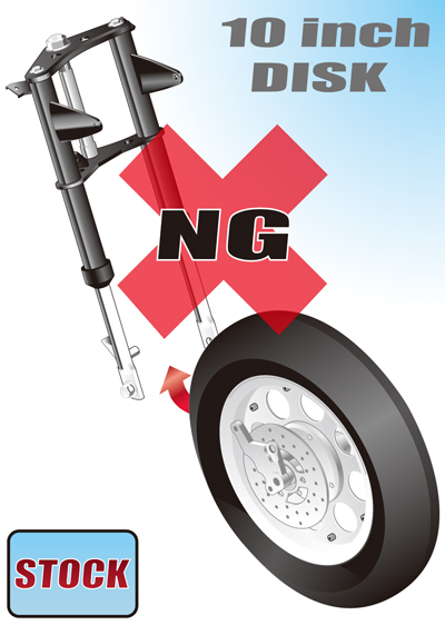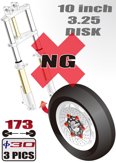 この組み合わせはできません。フォークがボトムした際、シリンダーヘッドに干渉します。 THIS COMBINATION NOT POSSIBLE. FORK INTERFERES WITH CYLINDER HEAD WHEN BOTTOMED.