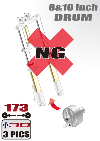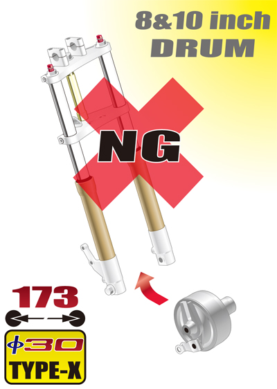 この組み合わせはできません。ドラムハブ、ブレーキパネルが装着できません。 THIS COMBINATION NOT POSSIBLE. DRAM HUB / BRAKE PANEL NOT USABLE.